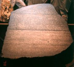 ロゼッタストーンです。 あまりにも有名ですね、これは。 世界史の教科書にも出てきます。