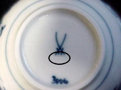 とはいえ、見た目は通常品とまったく変わらず(素人目には)お値段の方は通常品の約半分以下。そのかわりマイセンマークのマイセンの双剣の下にセカンド品の証として傷が入れられている。